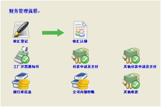 付款申请包括了付货款和付费用申请,付货款根据采购合同付定金管理、根据出运付货款管理,付费用根据结汇发票付费用管理、根据寄样管理付快递费用管理。